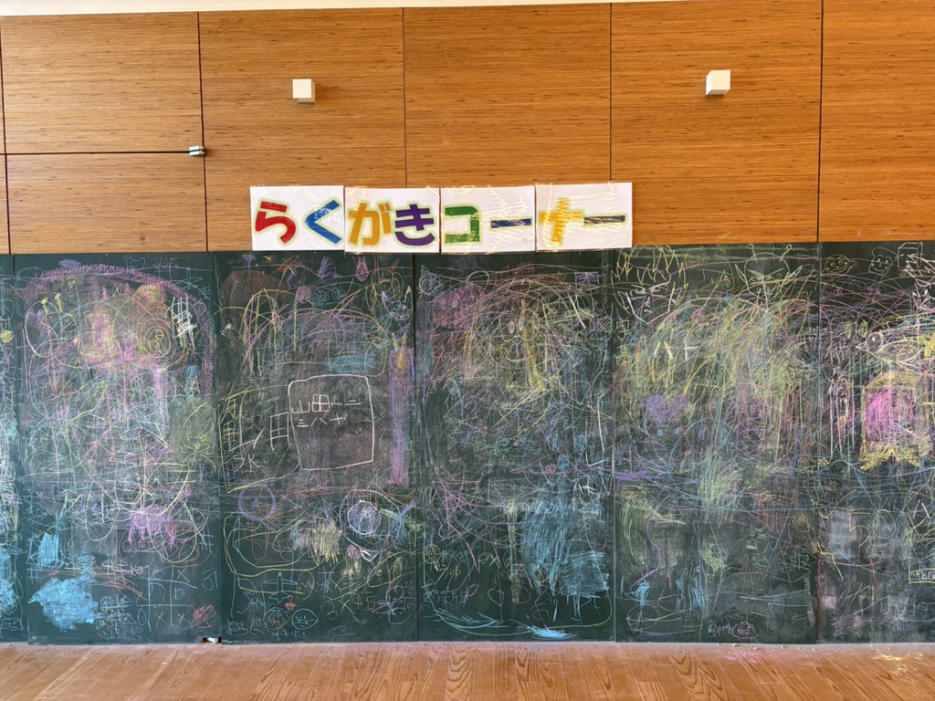 テラス・サンサンの壁に巨大らくがきボードが出現!思いっきりらくがきを楽しもう。